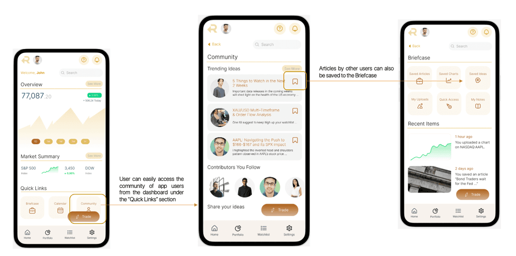 Key Mockup: Community & Briefcase Features