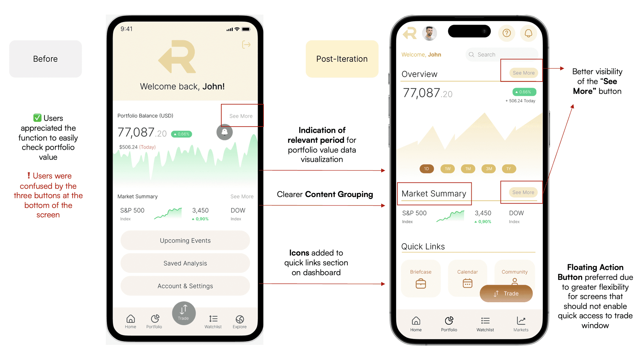 User testing for rTrade consisted of two main portions. This section provides an excerpt of the insights and iterations conducted for rTrade.