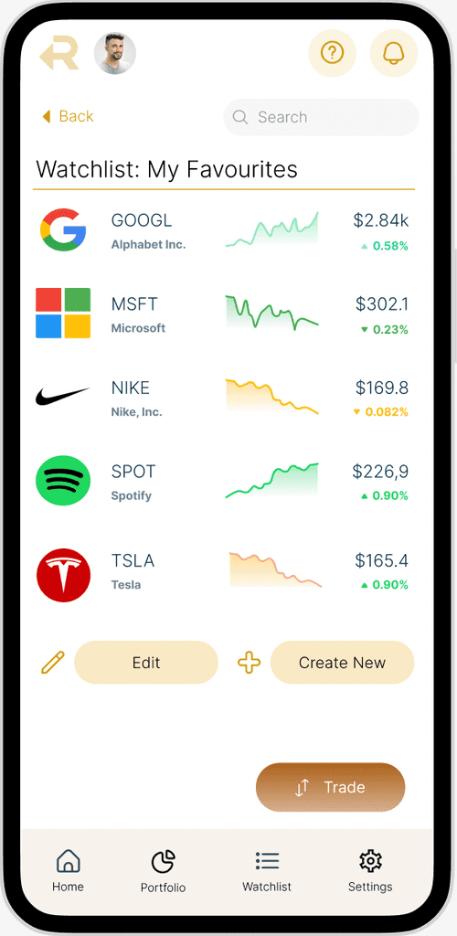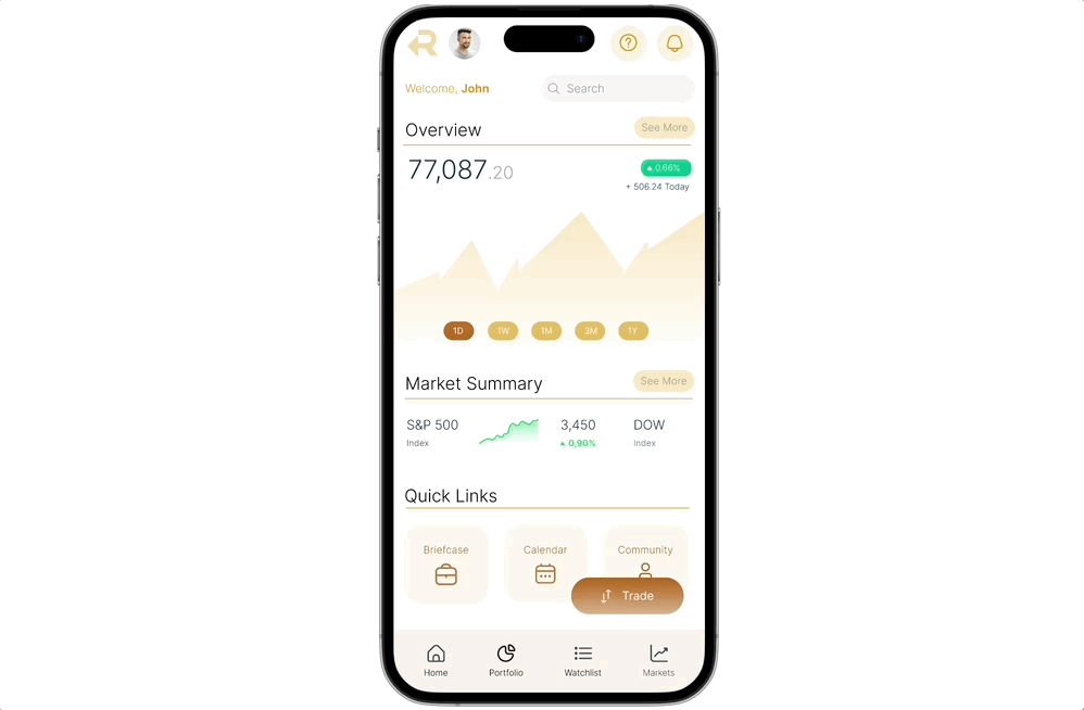 A conceptual mobile application for trading & investment that is optimised to focus on users' most frequent mobile activities