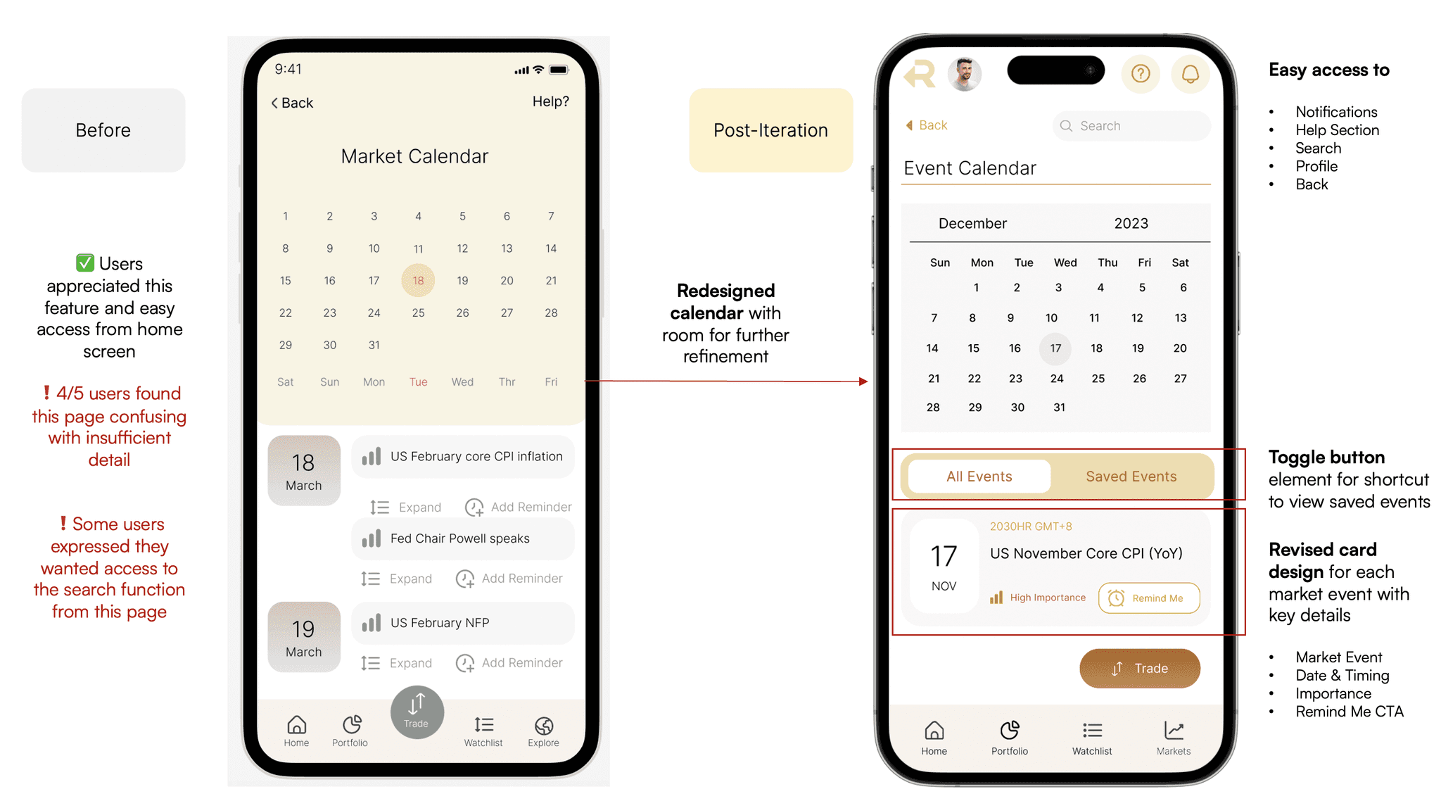 There is no shortage of options for retail traders and investors when it comes to mobile applications, with some catered to beginners and some catered to more sophisticated users. Nonetheless, my user research indicated that existing products on the market seem to fall short of addressing key pain points which directly impact users' most frequent mobile activities.