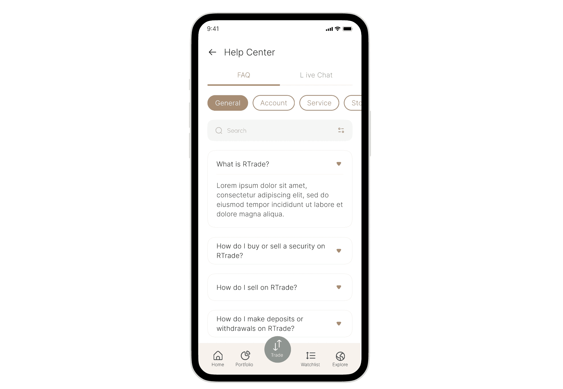 An entire sprint can be dedicated to a deeper expansion of the Help Centre feature, given the importance of in-app support in a trading & investing application.