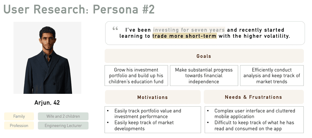 2. The secondary user persona is more experienced in terms of trading and investing and has clearer expectations from his use of a trading and investing mobile application.