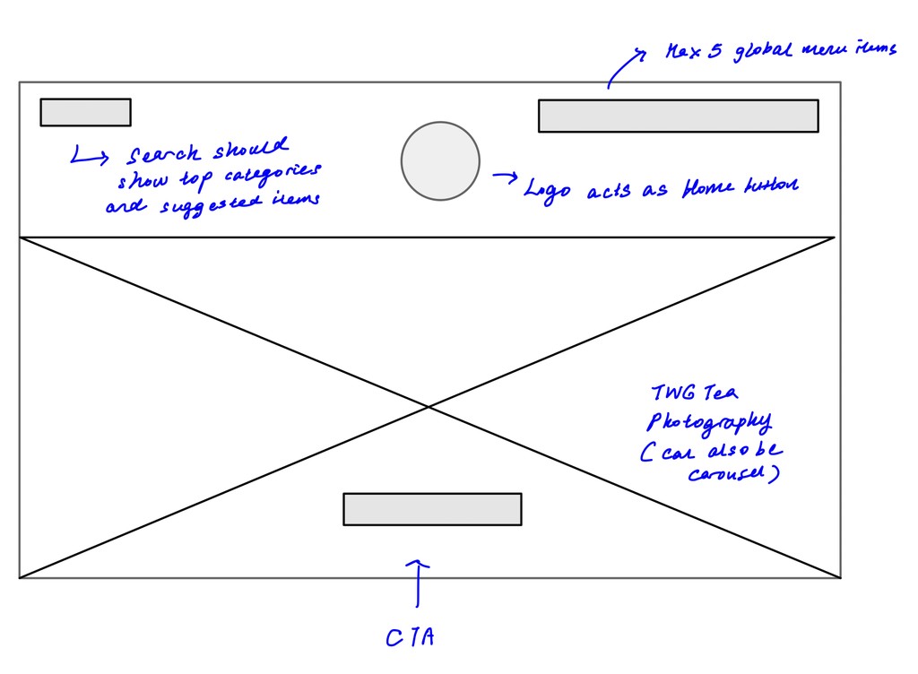 To further facilitate product discovery, the search bar would display suggested searches and popular categories when clicked. Placement of the search bar per the mockup, would be strategic such that users would easily notice it upon landing on the TWG website. This is consistent with the F-pattern for viewing, and was also validated through user testing.