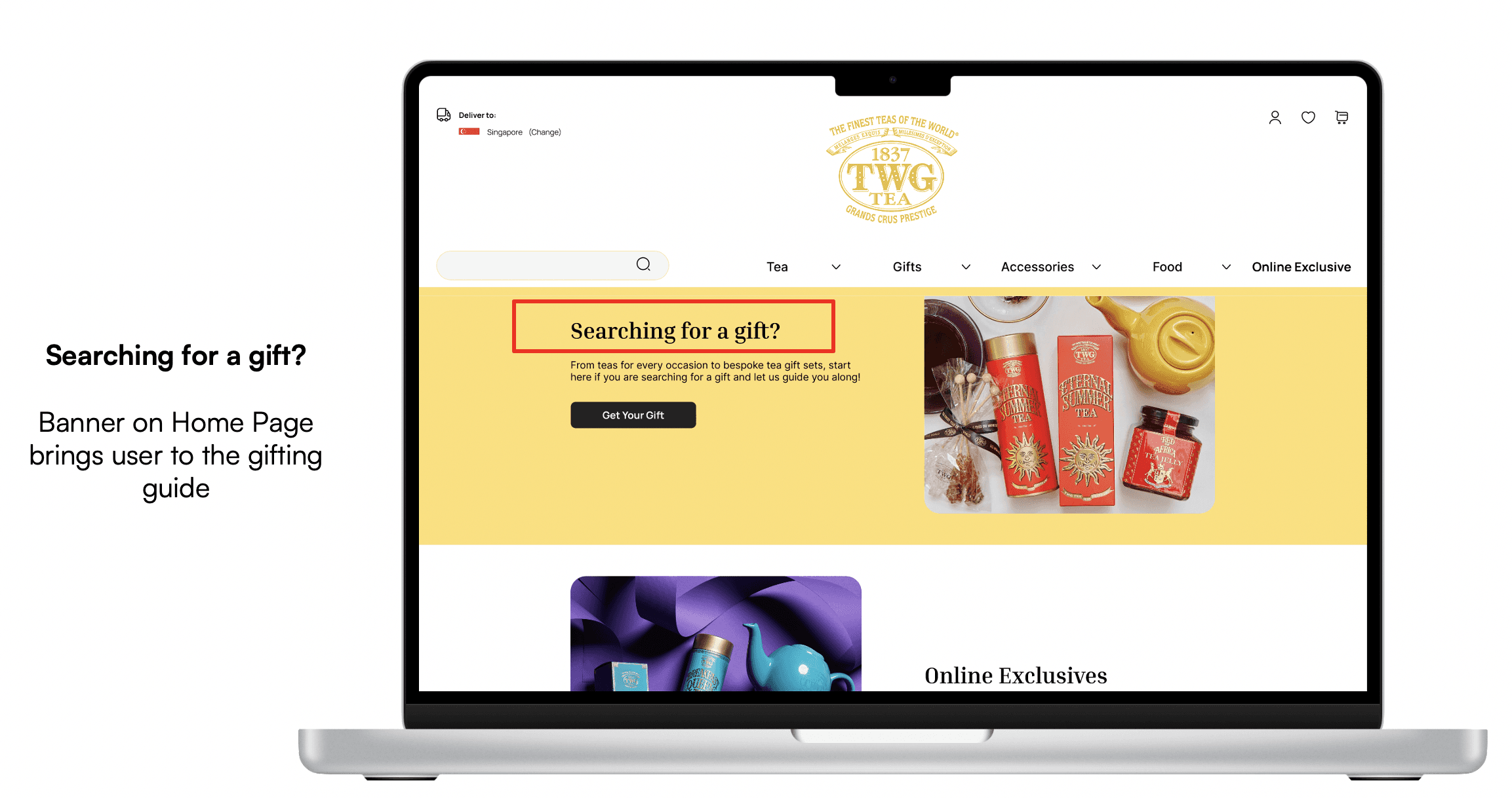 Once this was done, more feature-rich solutions to cater to secondary needs could then be implemented. Namely, better articulation of the wealth of information on TWG's products (Solution 2) as well as improving the user flows for gift purchases (Solution 3).
