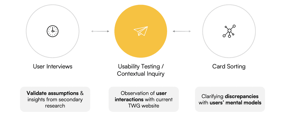 The goal of this stage was to get a stronger sense of the problem space, particularly from the perspective of users of the TWG website.