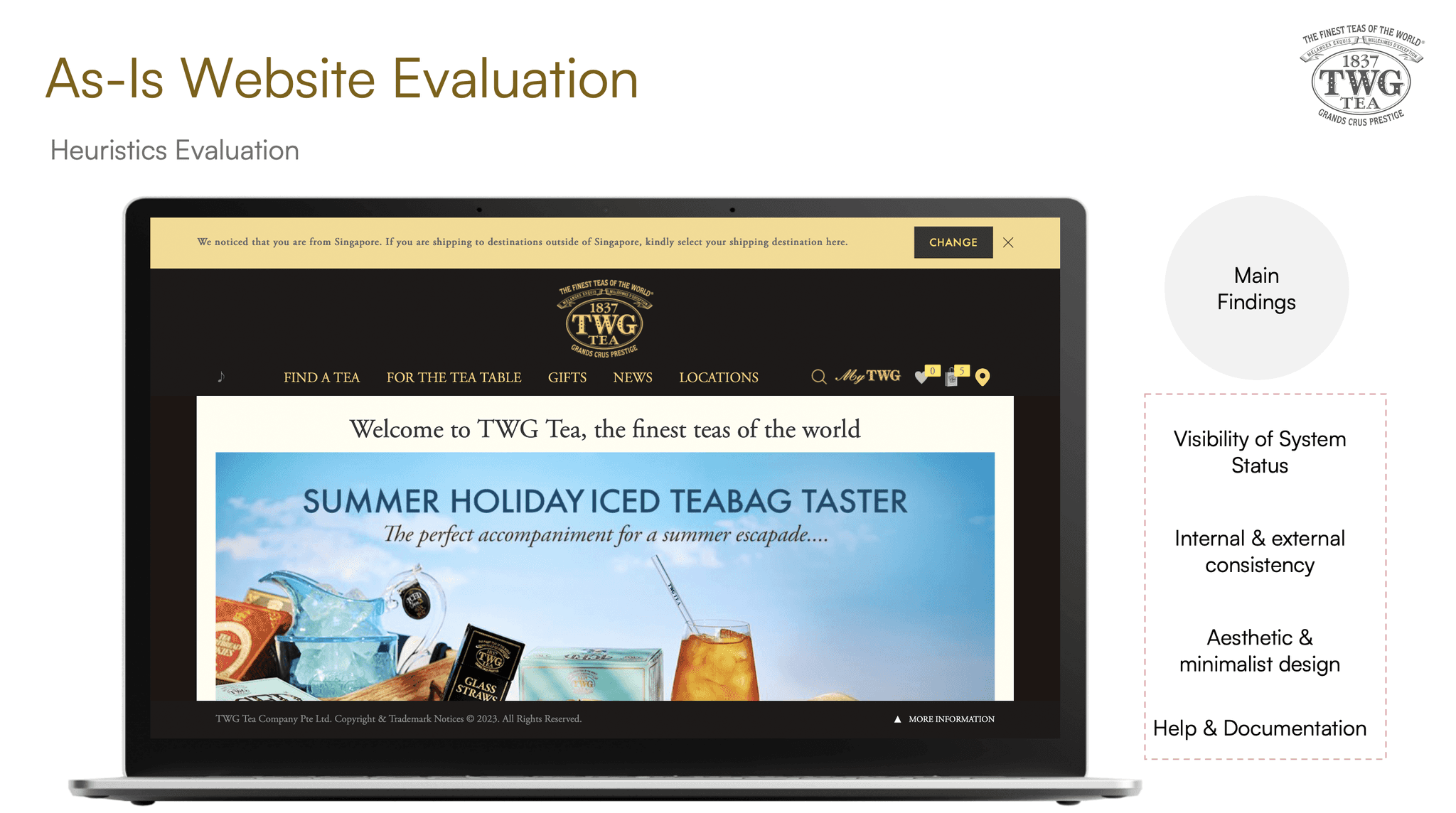 Apart from user sentiments on the existing TWG website, we also did an evaluation of the current website.