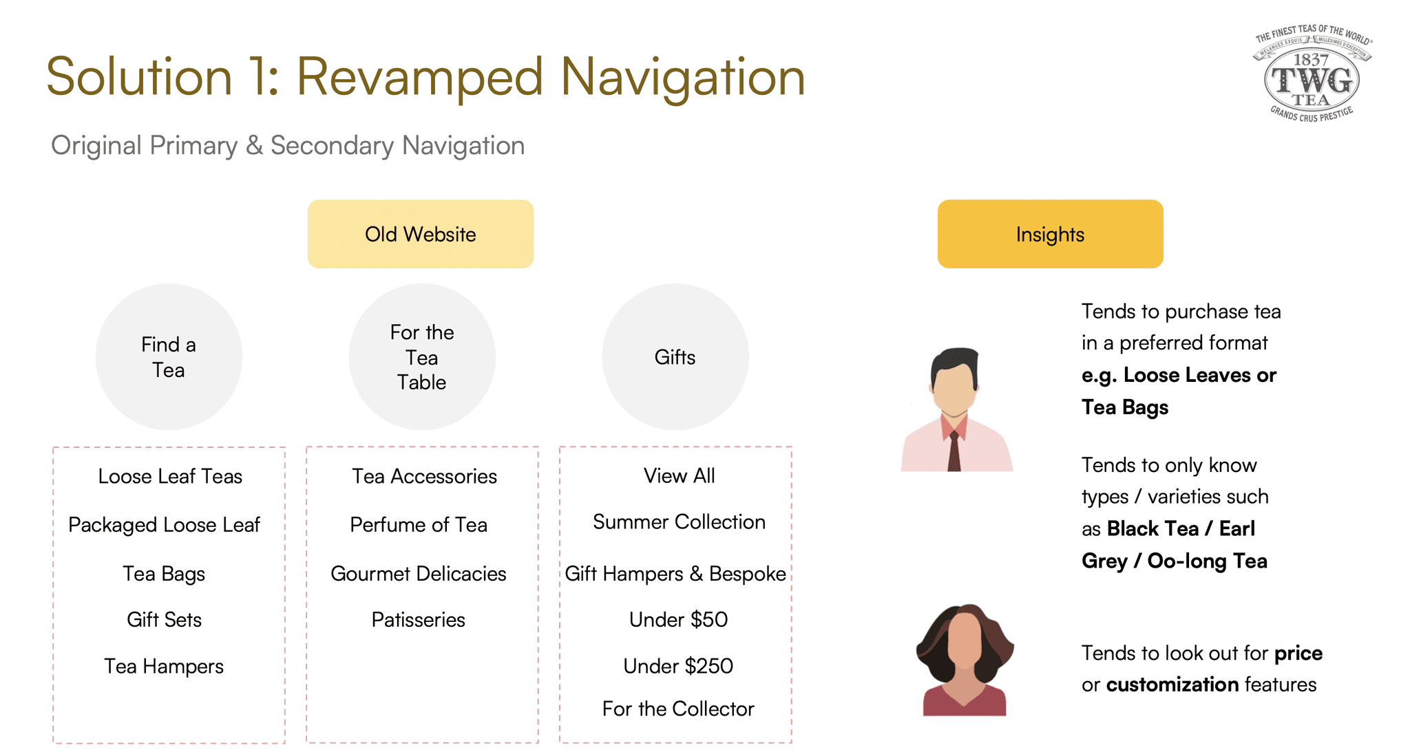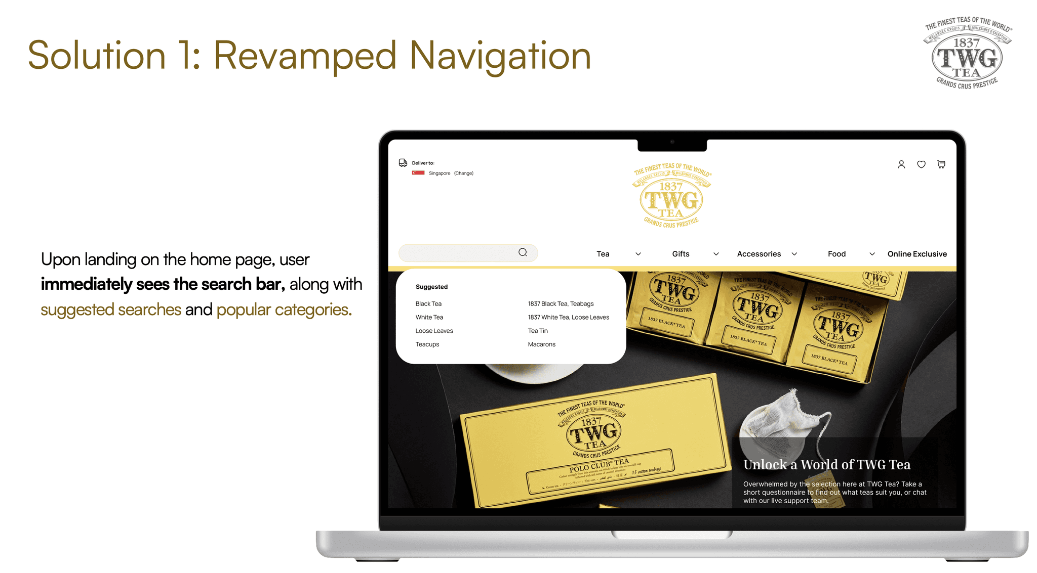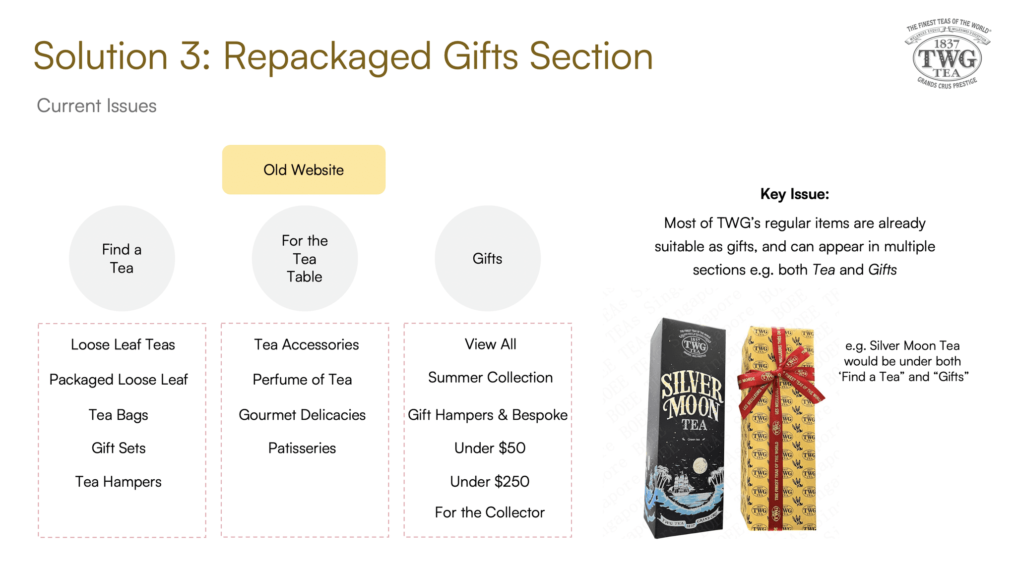 A proposed redesign of the e-commerce platform of specialty tea retailer TWG to improve the information architecture and purchasing experience for target users.