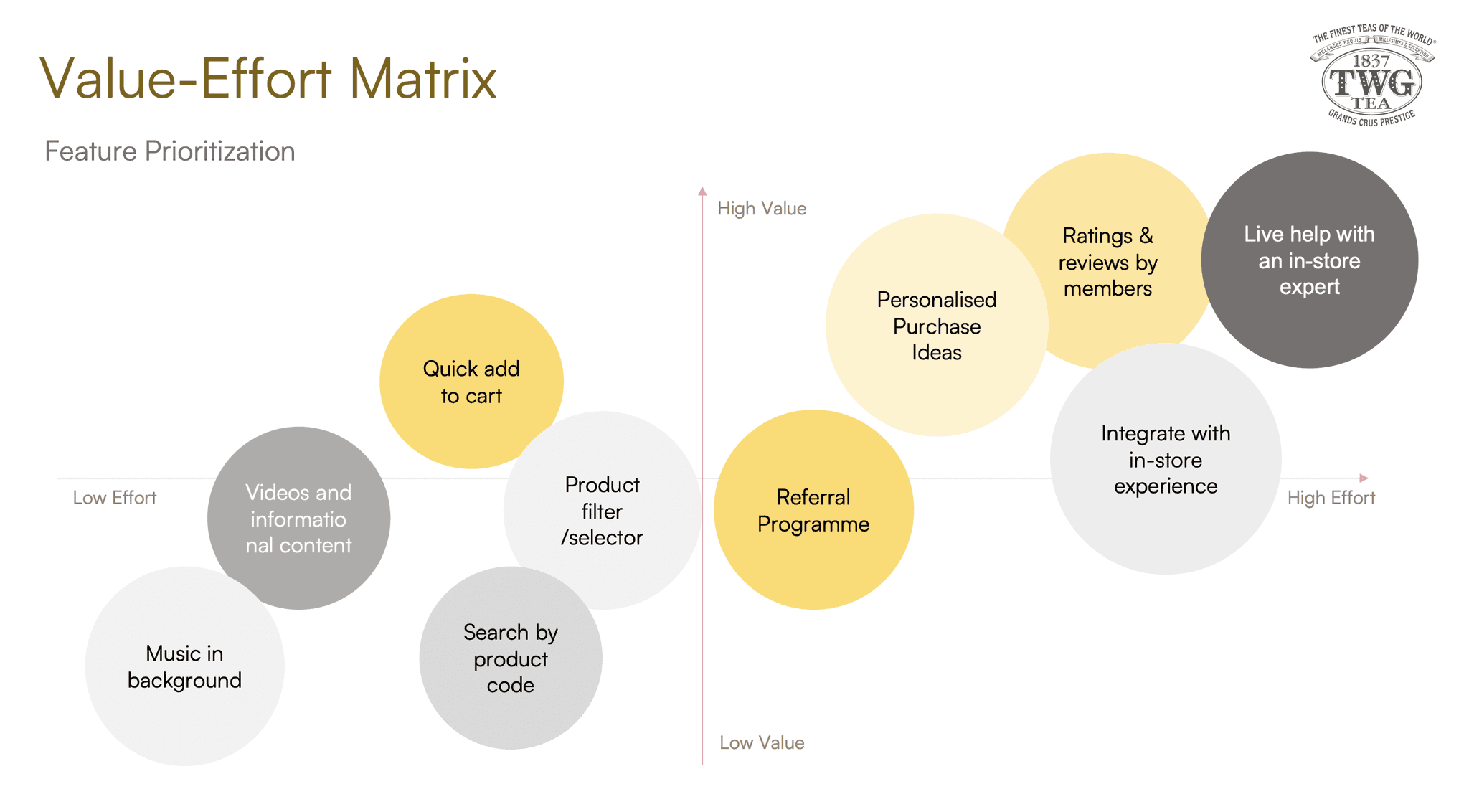 Before seeking our users' opinions, we first wanted to objectively understand the context and goals driving the launch of TWG's existing website. From our desk research, we learnt that apart from being a platform for online sales, the TWG website was meant to be an extension of its premium brand and experience. For instance, the website was intended to be an "interactive tea connoisseur", such that users would have access to rich content on TWG's tea blends and harvests without needing to visit an outlet physically.