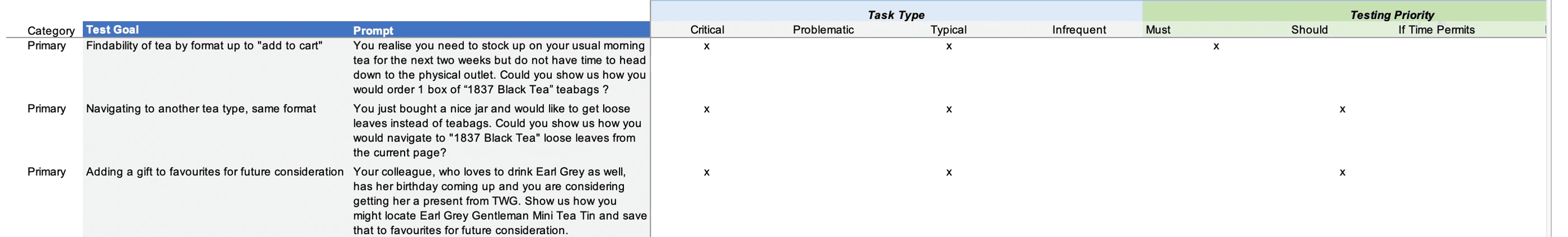 We also conducted open card sorting with our users to understand how they would naturally organise the variety of products available on TWG's website. This was extremely useful in revealing to us any disparities between the the way the website presented its categories with our users' mental models.